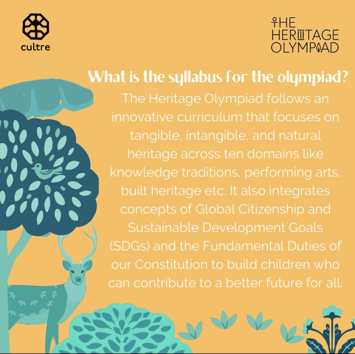 The Heritage Olympiad was supported by many prestigious institutions and brands including UNESCO, FabIndia, Sahapedia, Amar Chitra Katha, Juggernaut Publishing, National Rail Museum, Nehru Planetarium, INDIC Academy to name a few. The events were a huge success due to the strong participation of people from all age groups, ranging from 10 - 65 years! We also received participation from people from all corners of India spanning 26 states and 4 Union Territories, totalling 390 cities. Additionally, the olympiad garnered international interest, with participants from 20 countries apart from India taking part, and even securing top ranks!